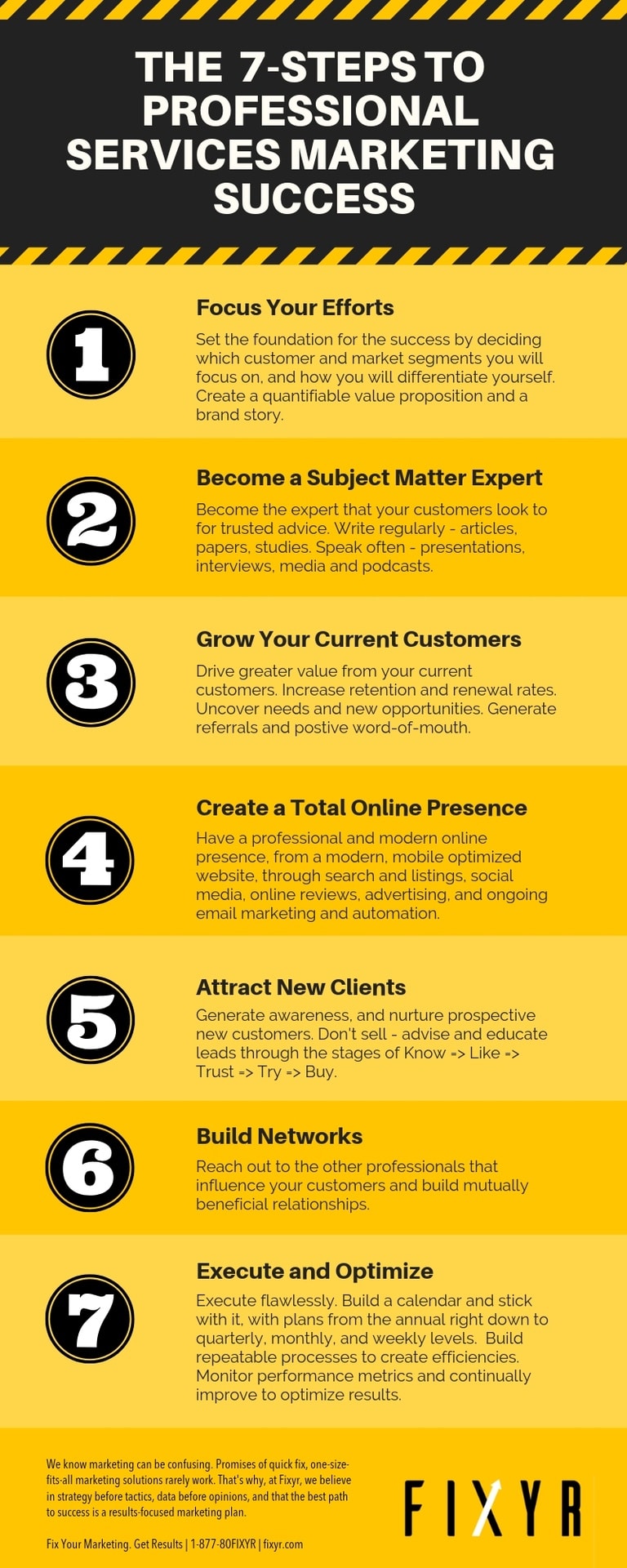 If you follow and implement these seven steps, you will be successful at professional services marketing. You will get better results, save time and effort, and you will grow your practice.